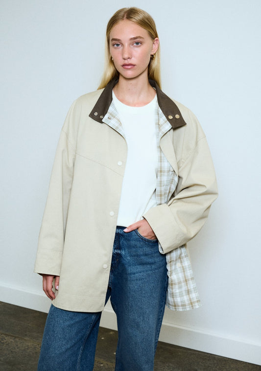 Ceres Riley Funnel Neck Tab Cardi - oat marle