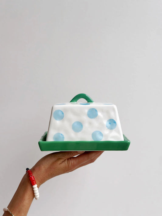 Noss & Co Butter Dish - blue dots with green
