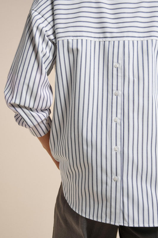 Little Lies Button Back Shirt - navy stripe