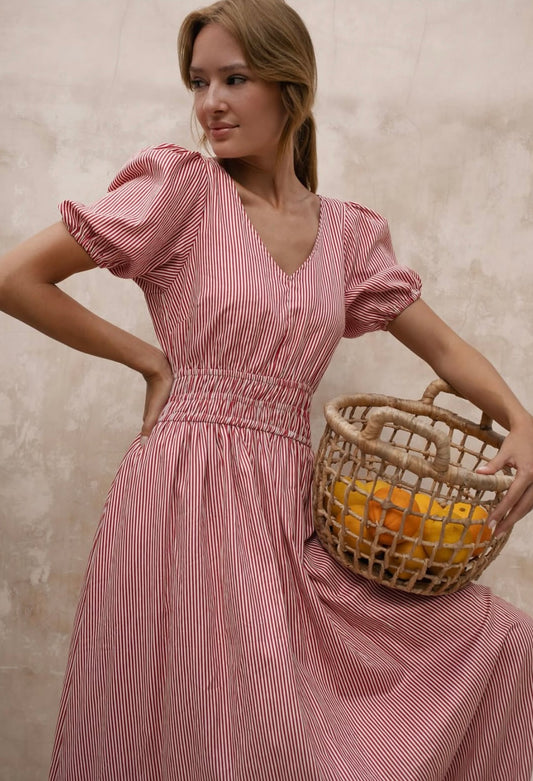 Ceres Charlotte Terry Midi Dress - burgundy milk stripe