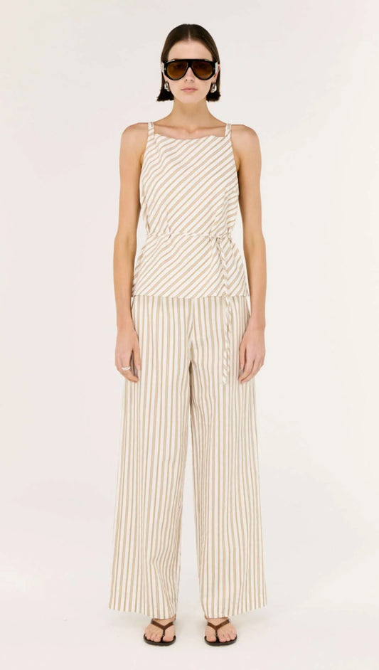 Staple the Label Lola Tie Waist Top - taupe/white stripe