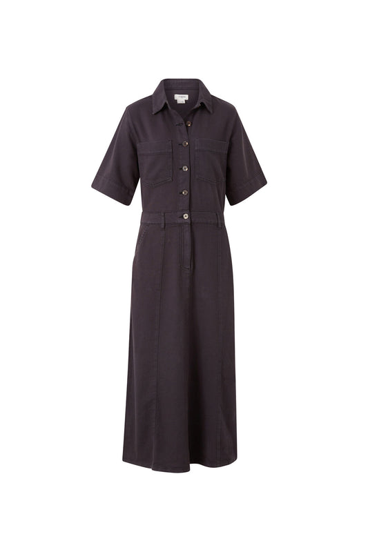 Ceres Life Short Sleeve Denim Maxi Shirt Dress - washed black twill