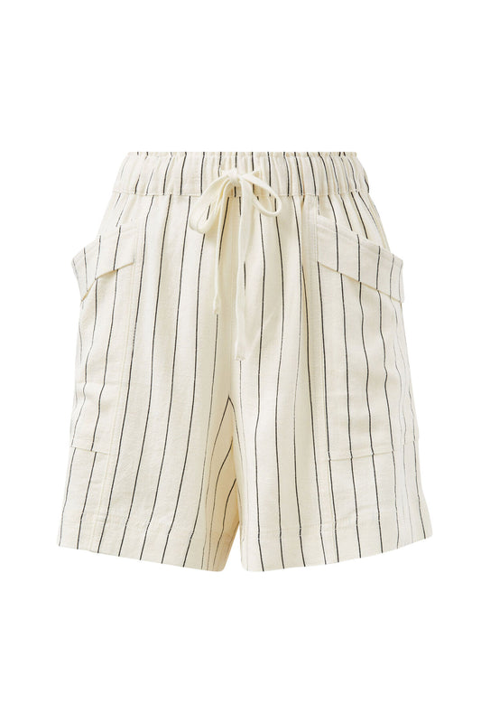 Ceres Life Split Hem Tee - eggshell/moss green bold stripe