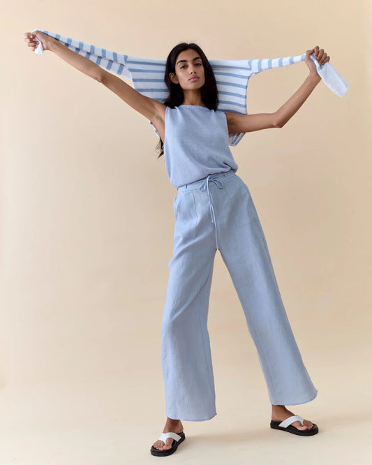 Ceres Peta Oversized Shirt - powder blue triple stripe