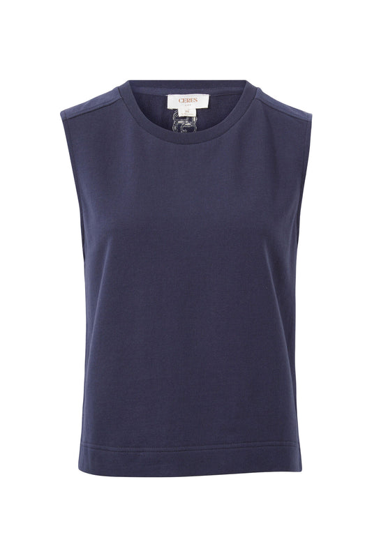 Ceres Life Contour Rib Scoop Tank - black/white monogram embroidery