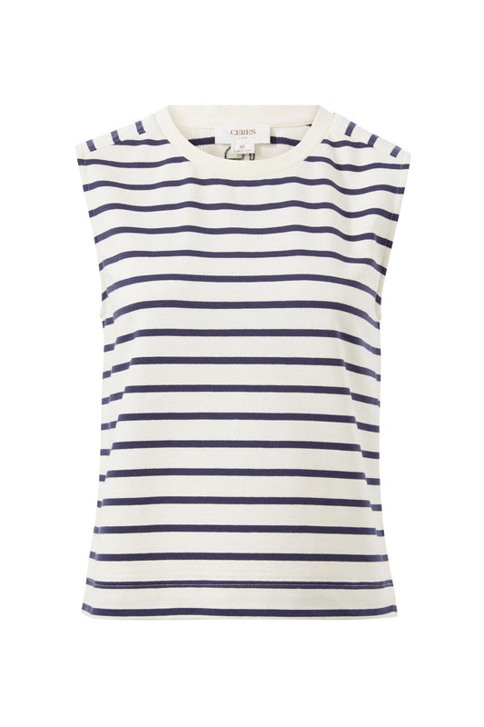 Ceres Contour Rib Scoop Tank - white/black monogram embroidery