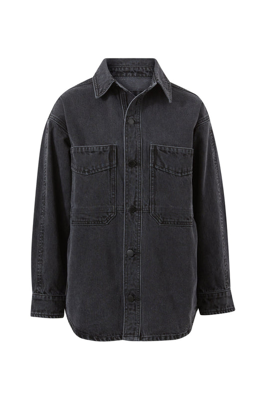 Ceres Life Bobbi Side Pocket Denim Shacket - washed black