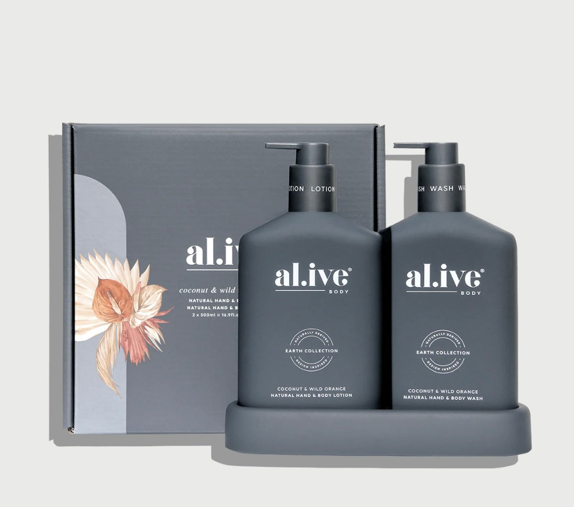 The al.ive body Coconut & Wild Orange Hand & Body Wash/Lotion Duo contains a luxurious blend of naturally derived ingredients, fortified with essential oils and native botanical extracts.