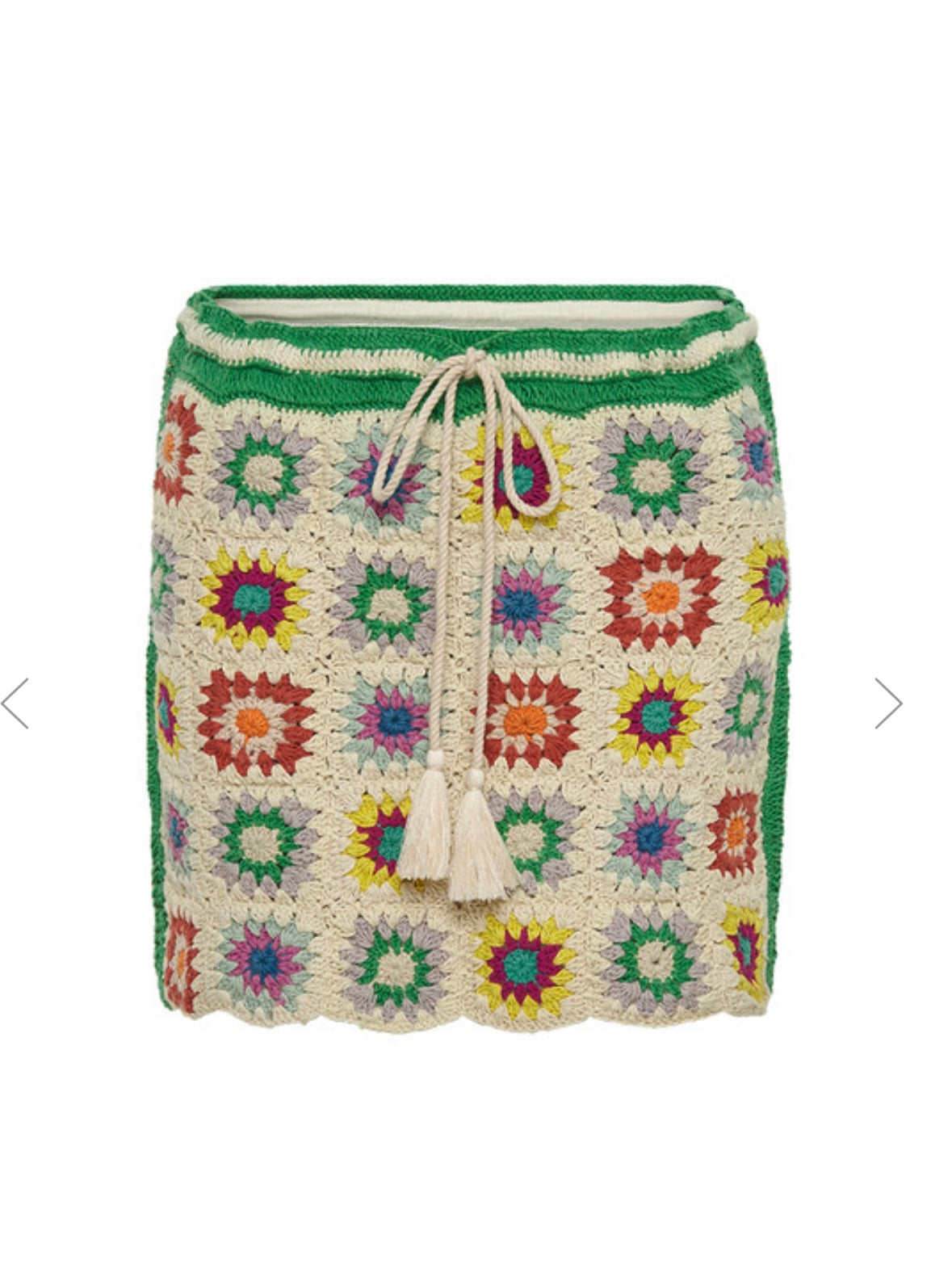 This mini skirt will serve you well on sunny vacations for years to come. Made by hand from multi-coloured cotton yarn, it has a drawcord and tassels to the centre front and looks equally as great with sandals, slides and boots. Wear yours with the matching top for maximum style mileage.