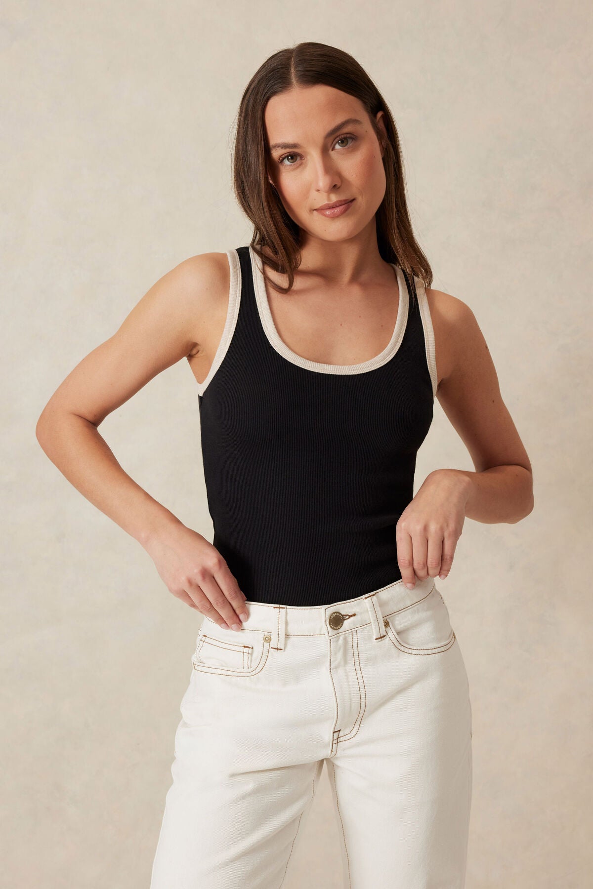 Ceres Life Contour Rib Scoop Tank - bk/oatmeal marle bind