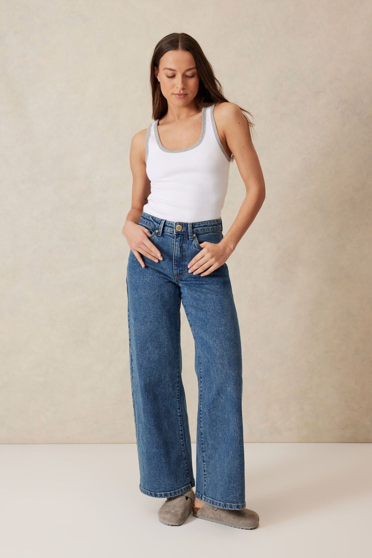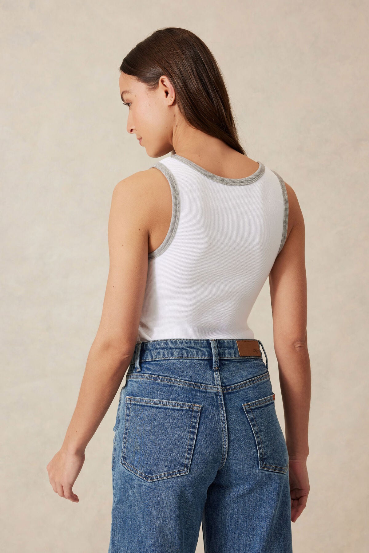 Ceres Life Contour Rib Scoop Tank - white/grey marle bind