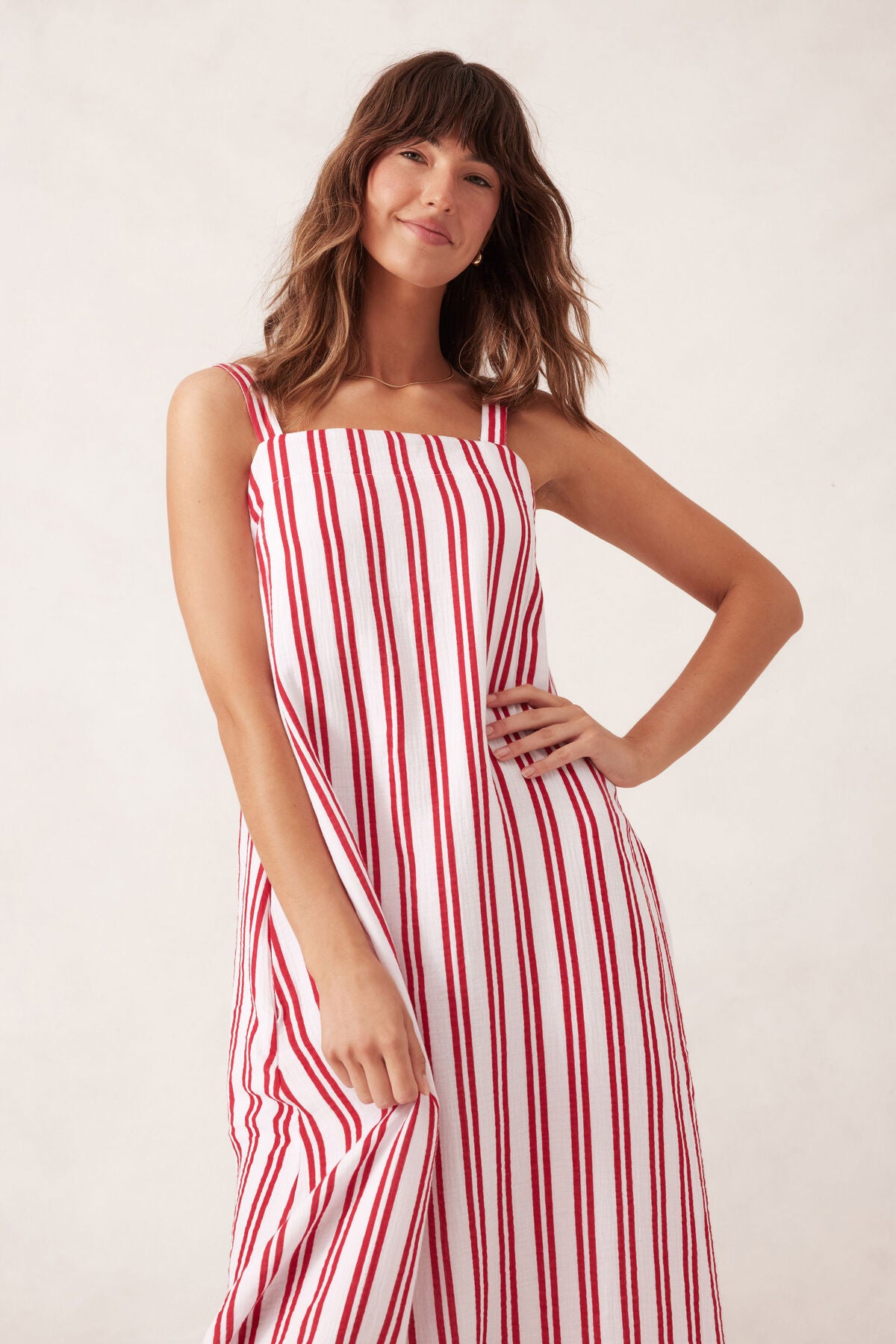Ceres Life Doublecloth Poolside Dress - heritage red double stripe