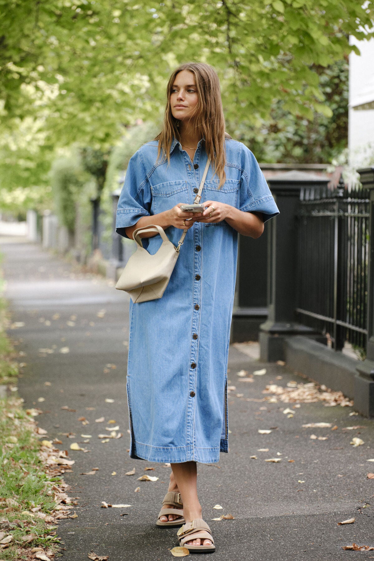 Ceres Life Short Sleeve Yoke Detail Midi Dress - vintage blue