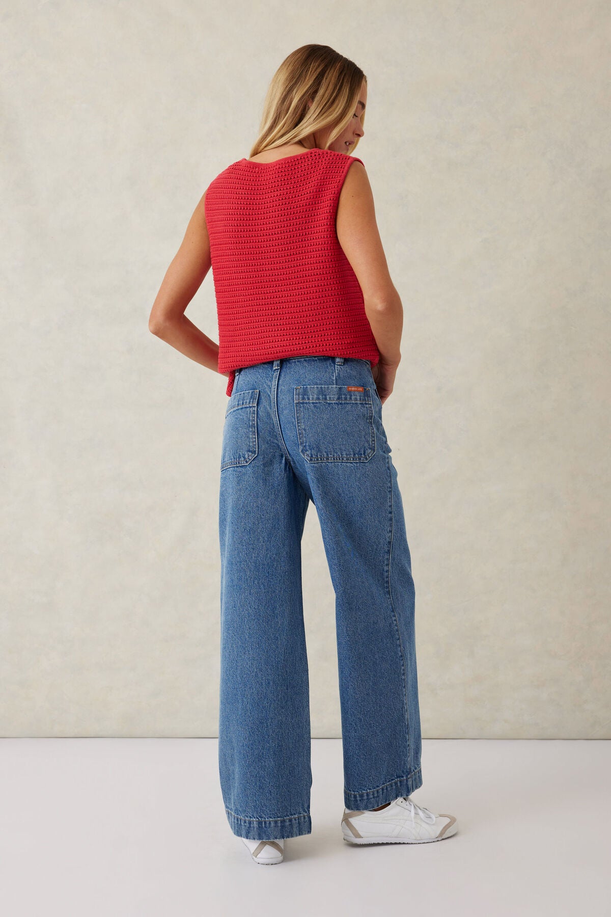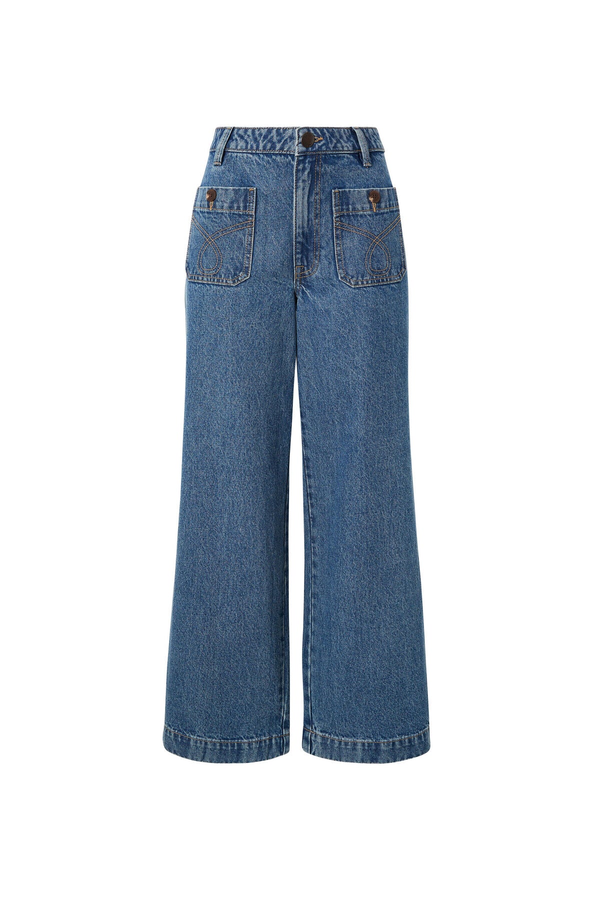 - Made from a rigid denim, make sure to size up if you are in between sizes or prefer a more relaxed fit