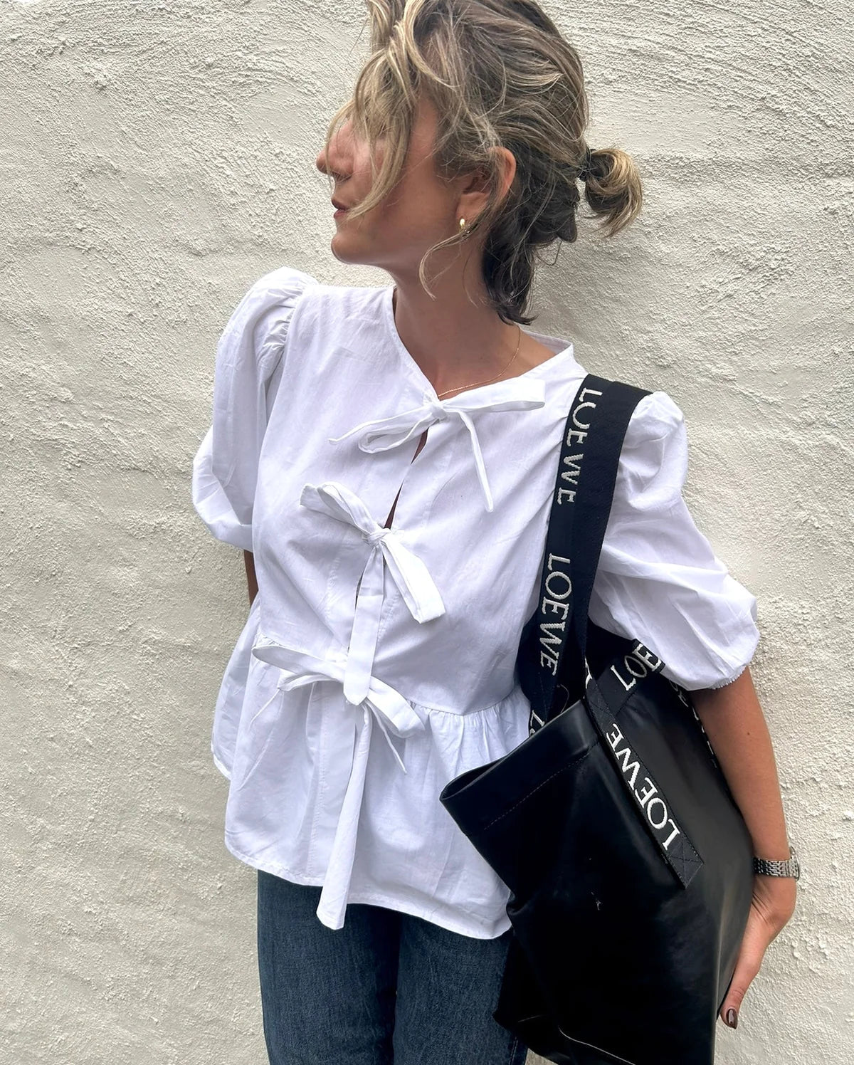 The Cutsey Bow Tie Blouse in White by Eyes on Floyd