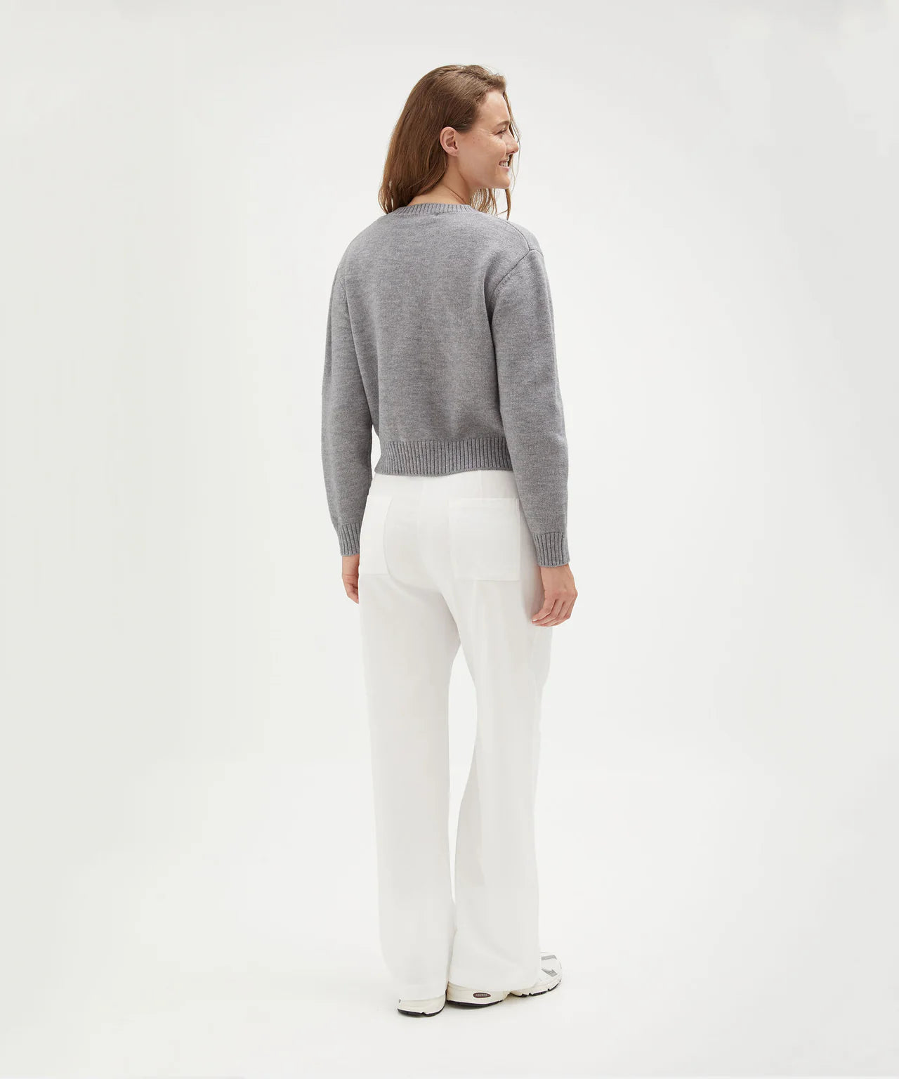 A winter layering essential, the Crew Neck Cardigan is a classic, relaxed cardigan. Made from a soft and stretchy jersey knit in core light grey. Featuring a button down front, designed to be styled your way.