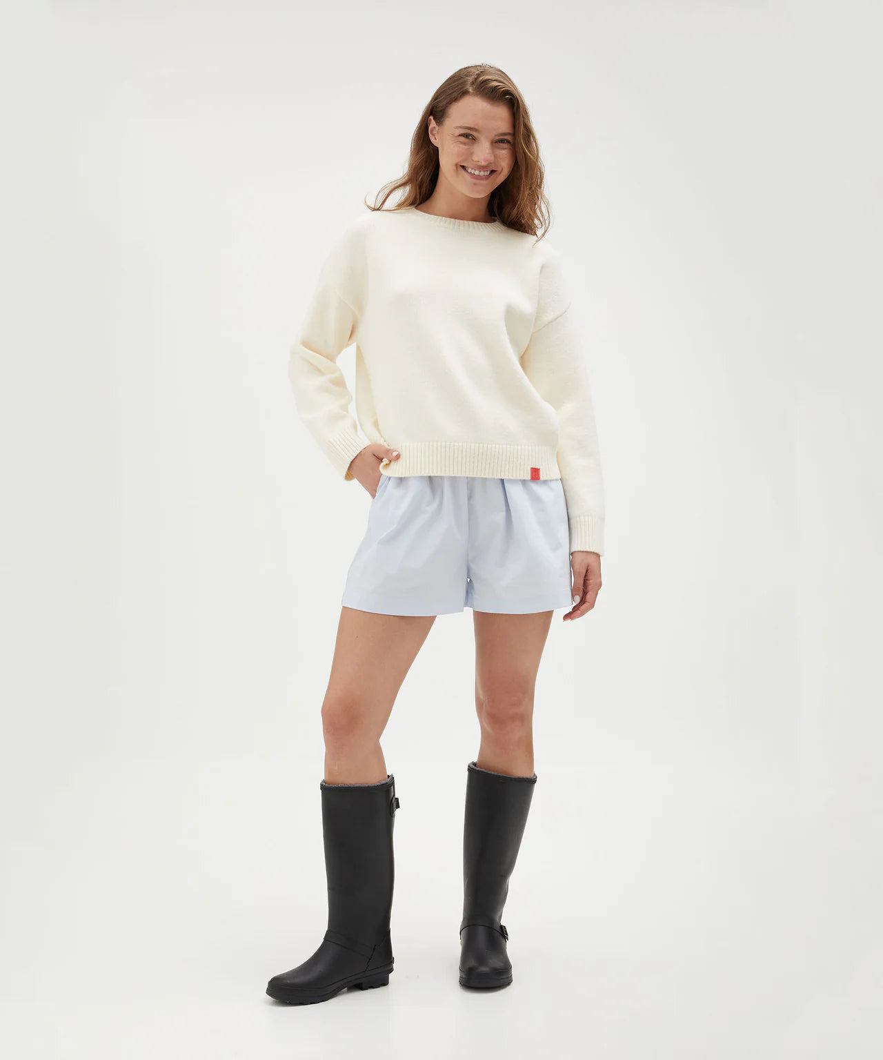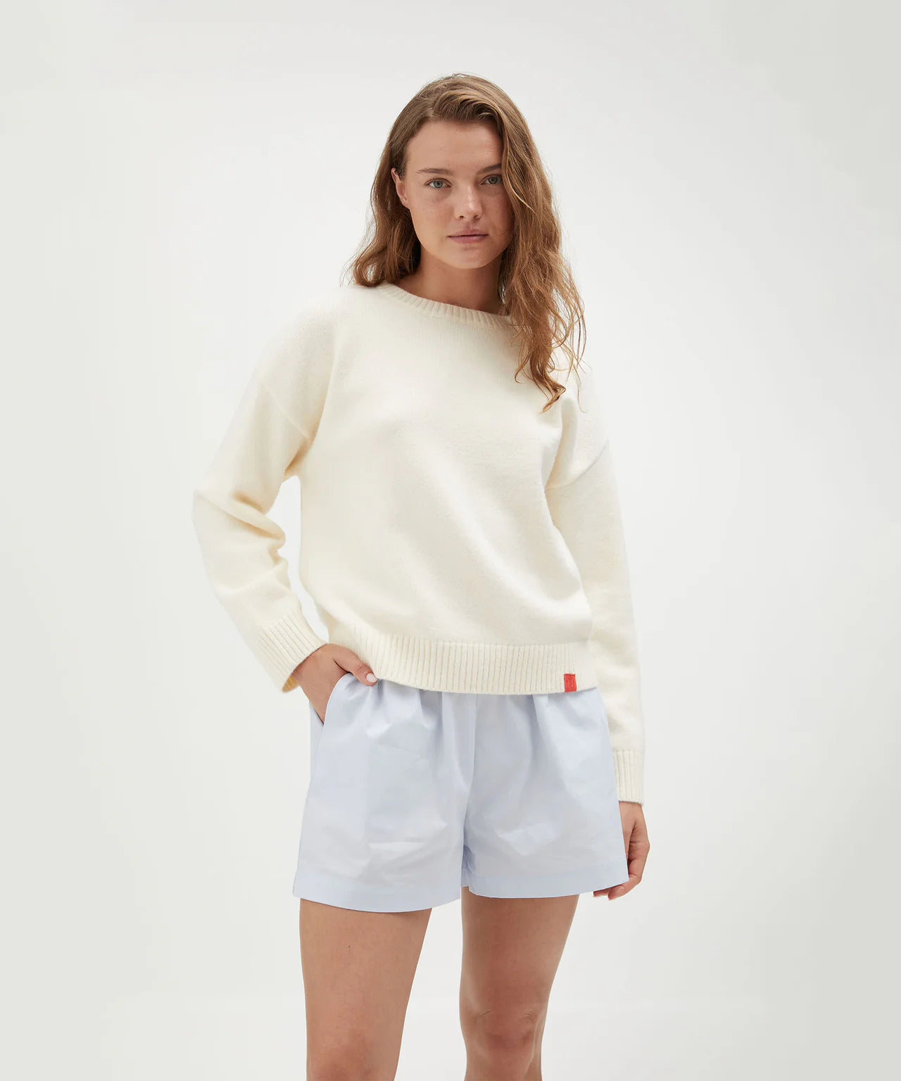 The perfect base of any winter wardrobe, the Crew Neck Knit is a core everyday knit designed for the reliable wardrobe. A classic cream jumper, made from a soft and stretchy jersey knit. Featuring a relaxed and slouchy fit, perfect for winter layering.