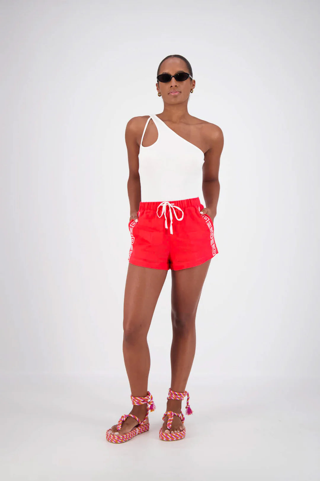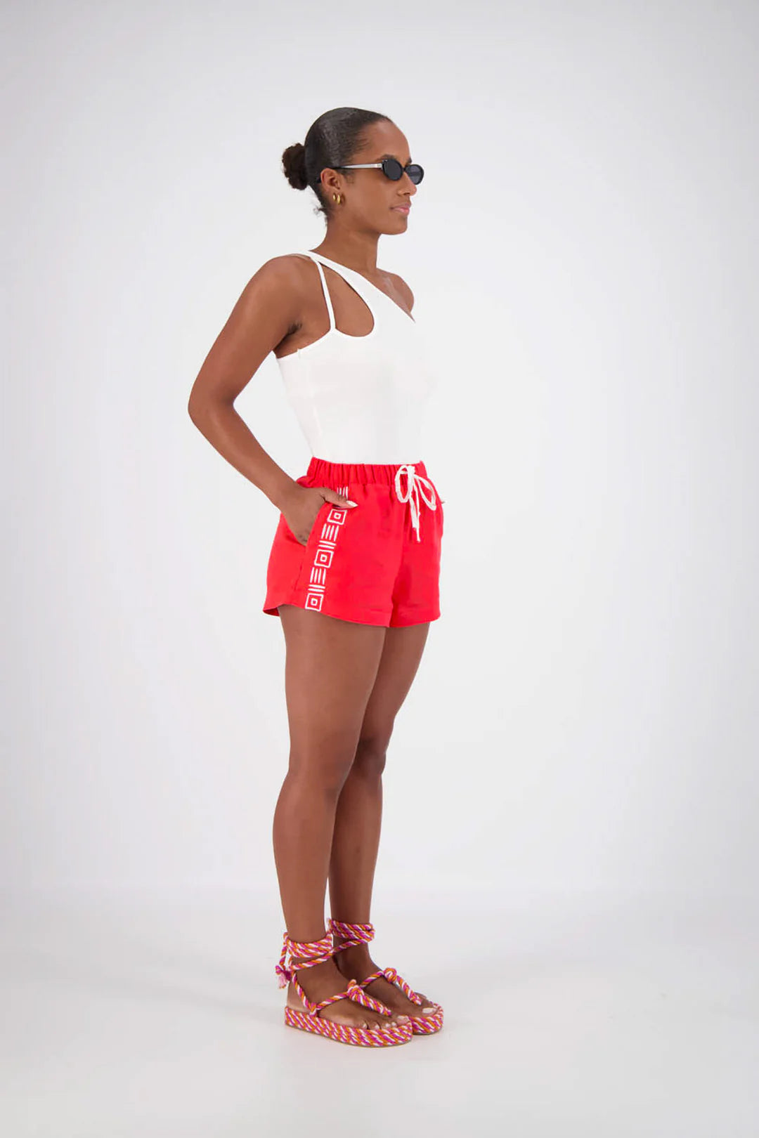Made from a luxurious linen blend, the Rosetta shorts feature elegant embroidery and a relaxed fit. The elastic waistband and drawstring ensure a comfortable fit, while the hem split adds a touch of sophistication. Complete the look with the matching Rosetta Shirt.