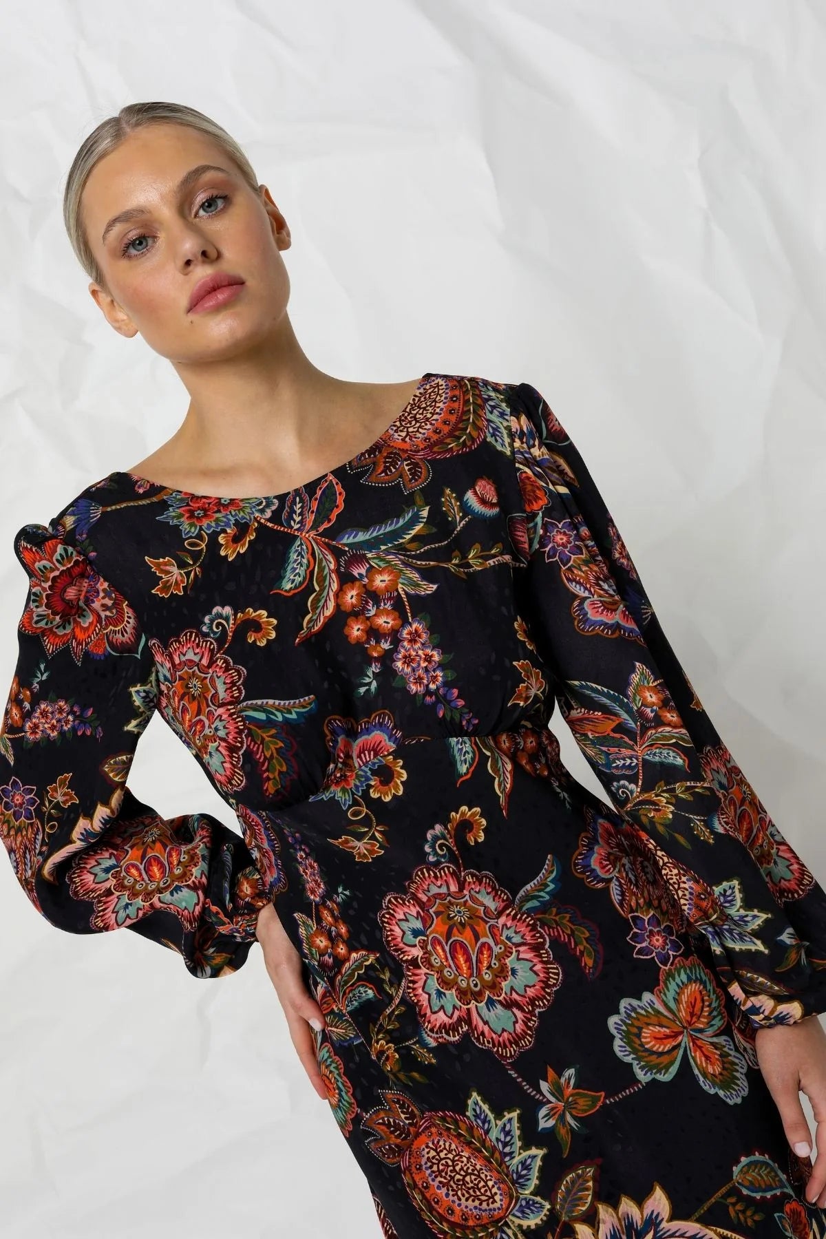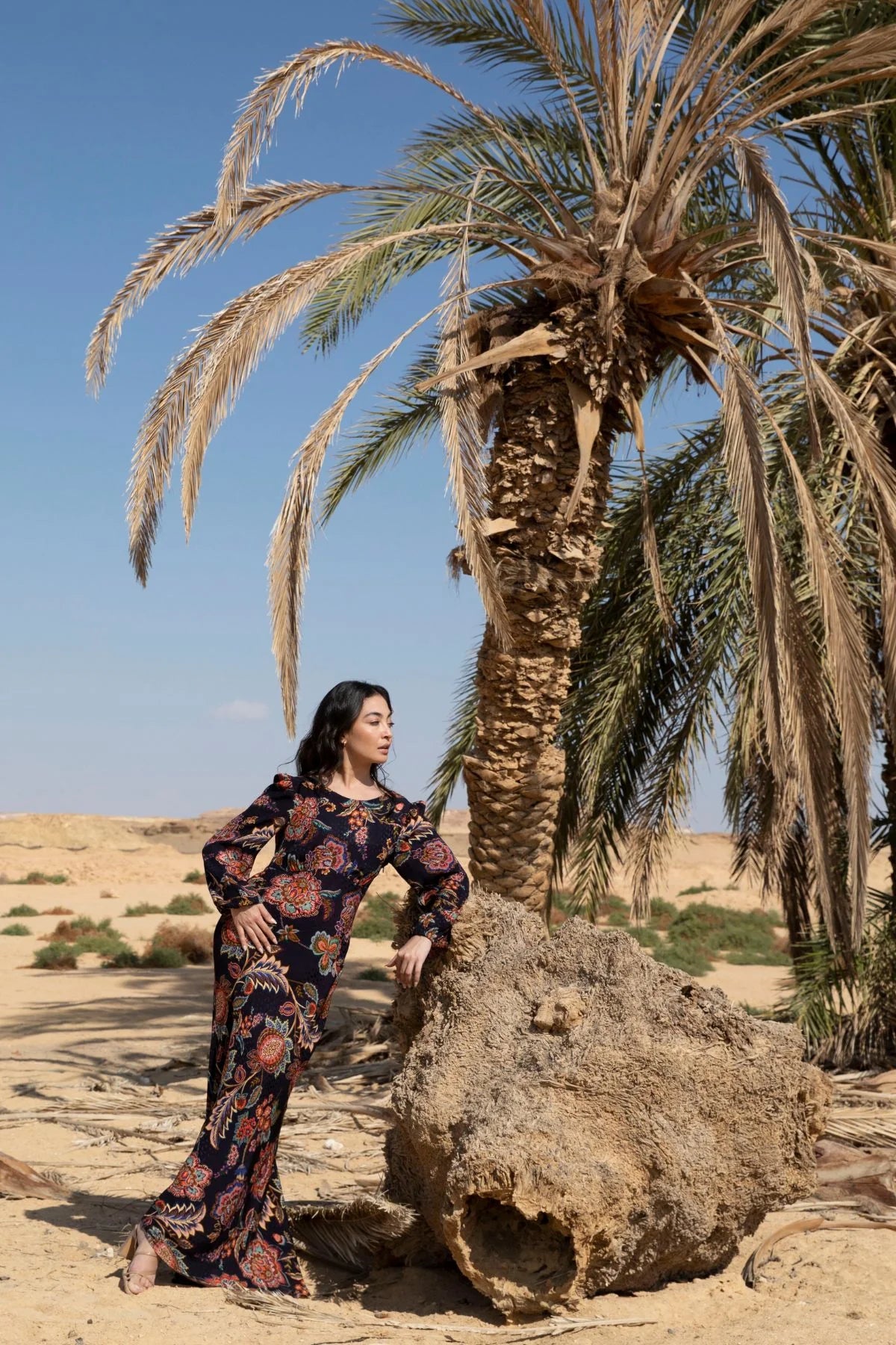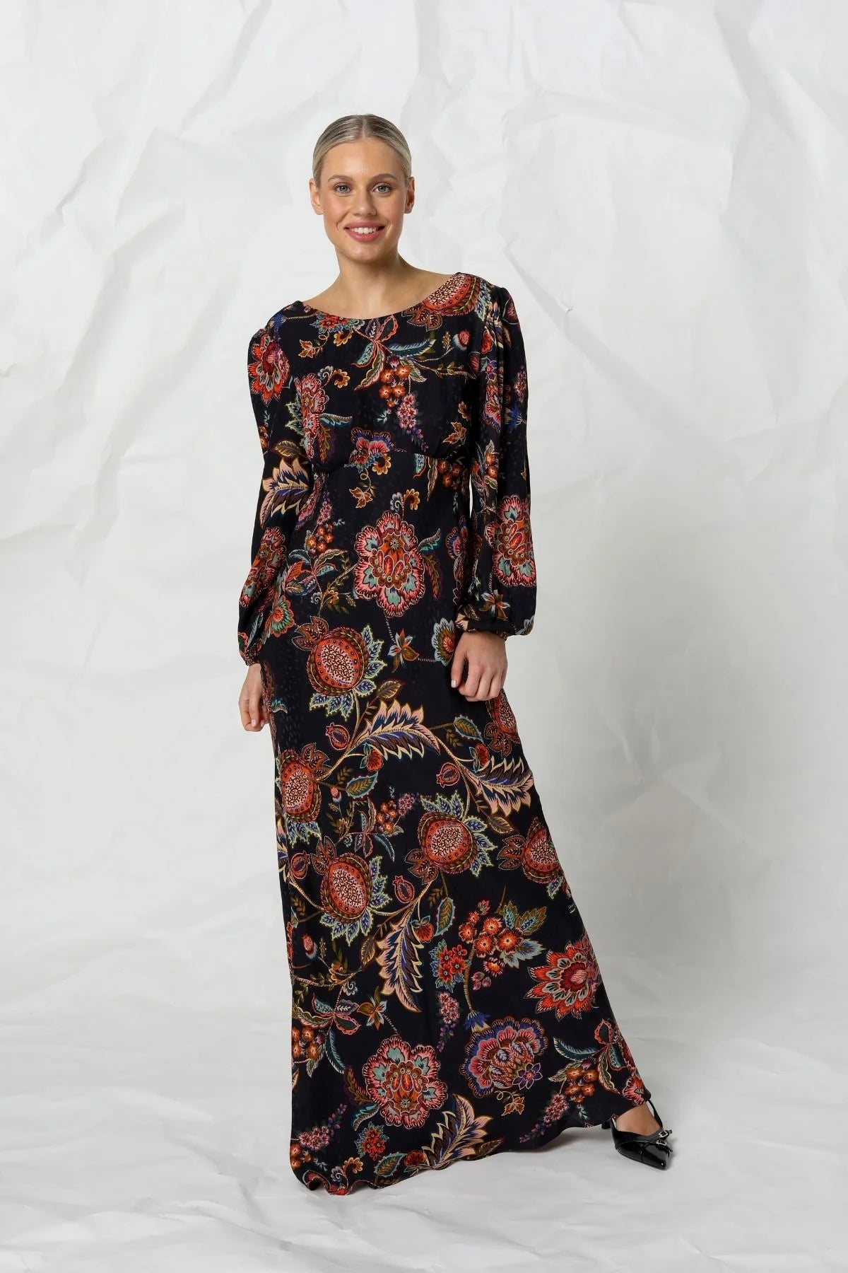 The Nevaeh Maxi Dress by KACHEL is a standout piece, made from a lightweight fabric and covered with a striking floral abstract print. With its flowing silhouette and long sleeves, it offers both comfort and style. The bold, colourful pattern brings a playful yet refined energy, making it the perfect choice for special occasions or when you simply want to turn heads.