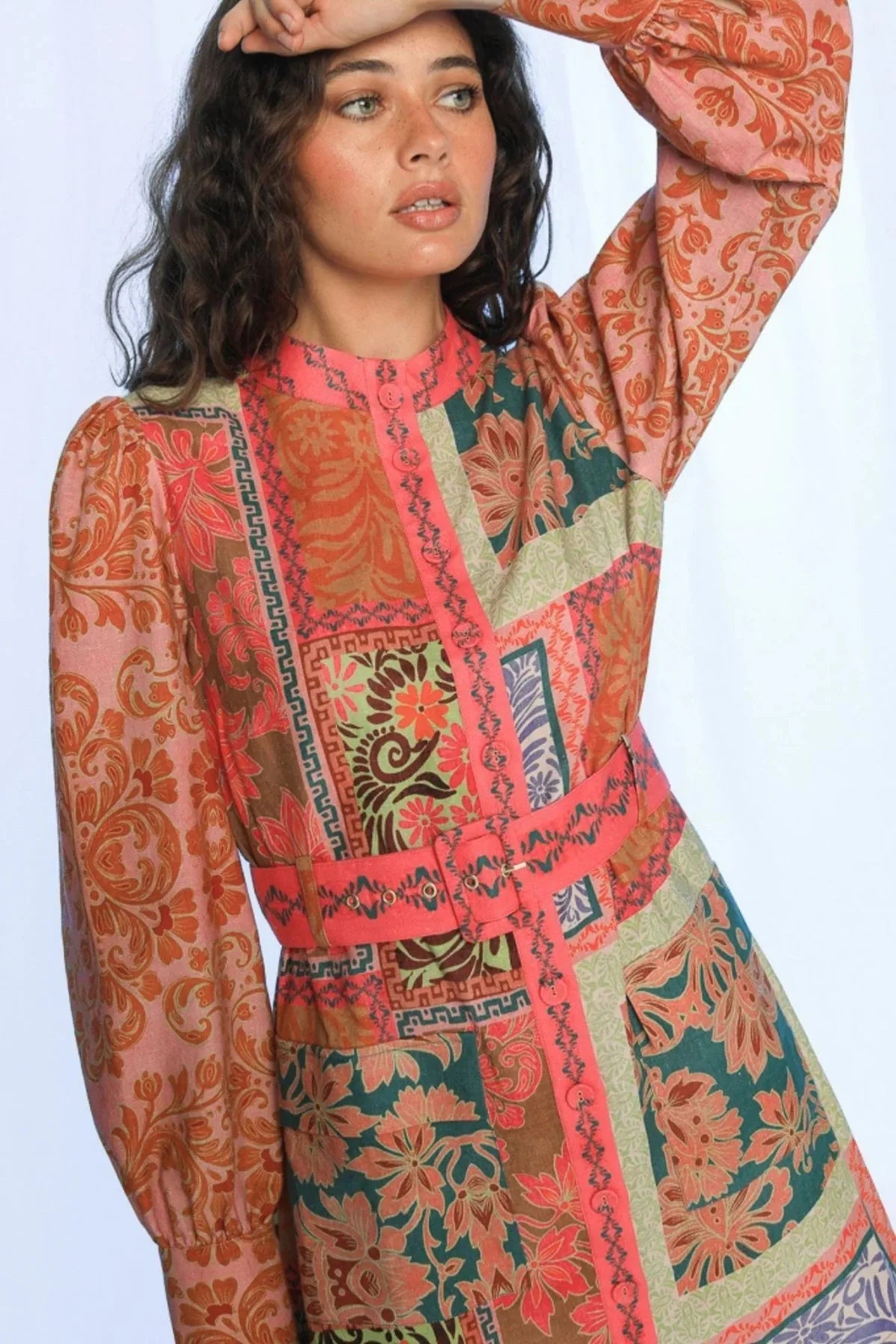 The Tina Mini Dress combines elegance and charm with its long sleeves and high neckline, creating a refined silhouette