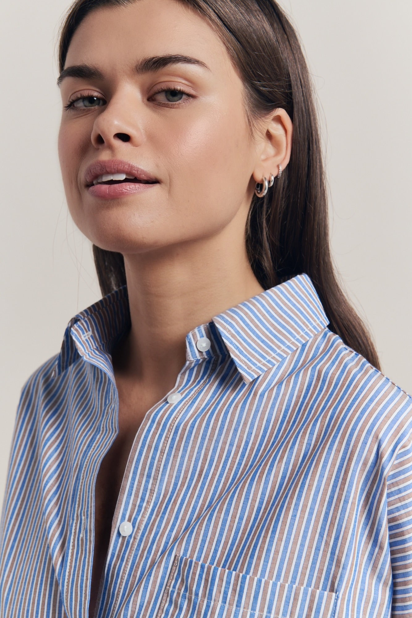 Little Lies Betty Stripe Shirt - blue/brown stripe