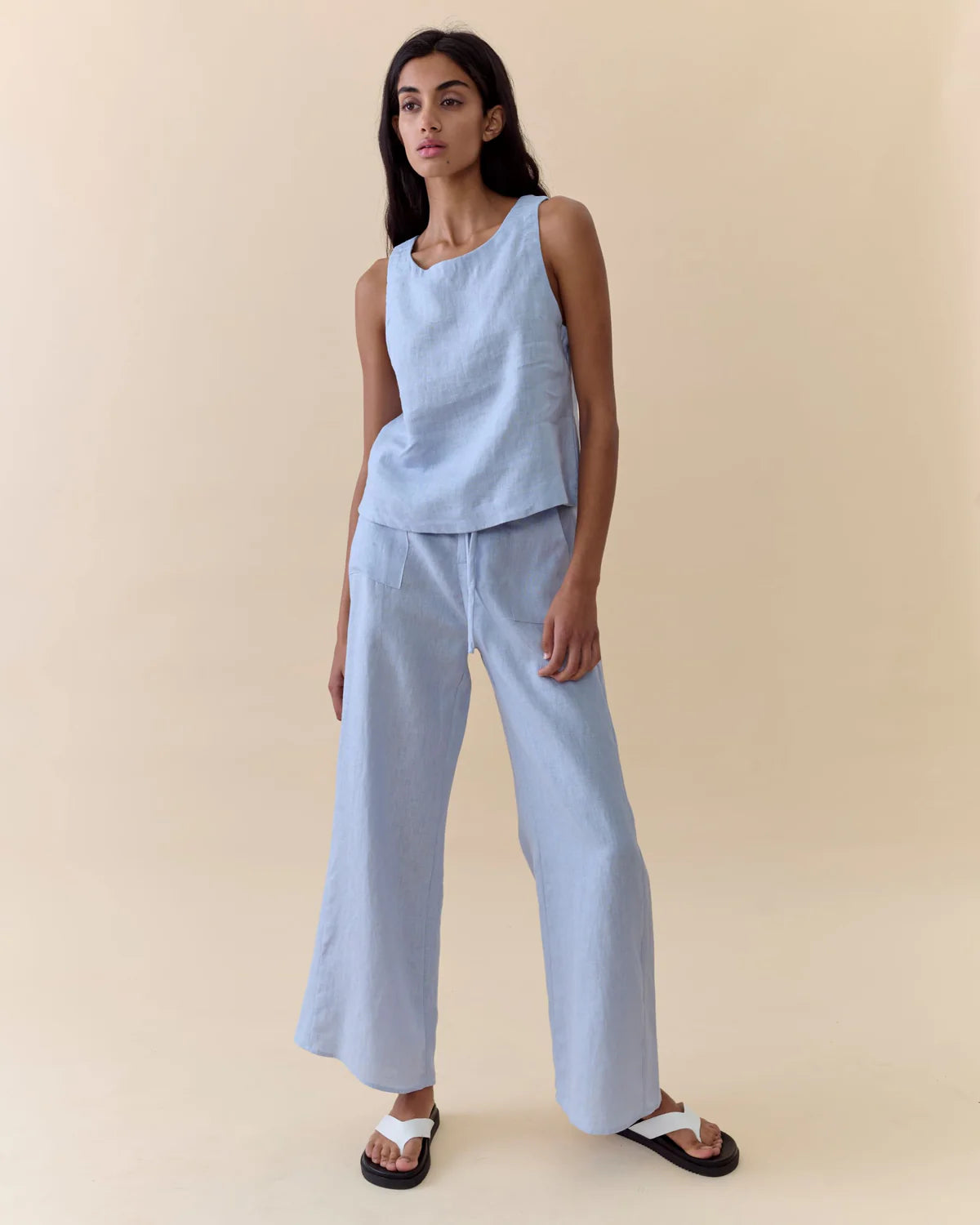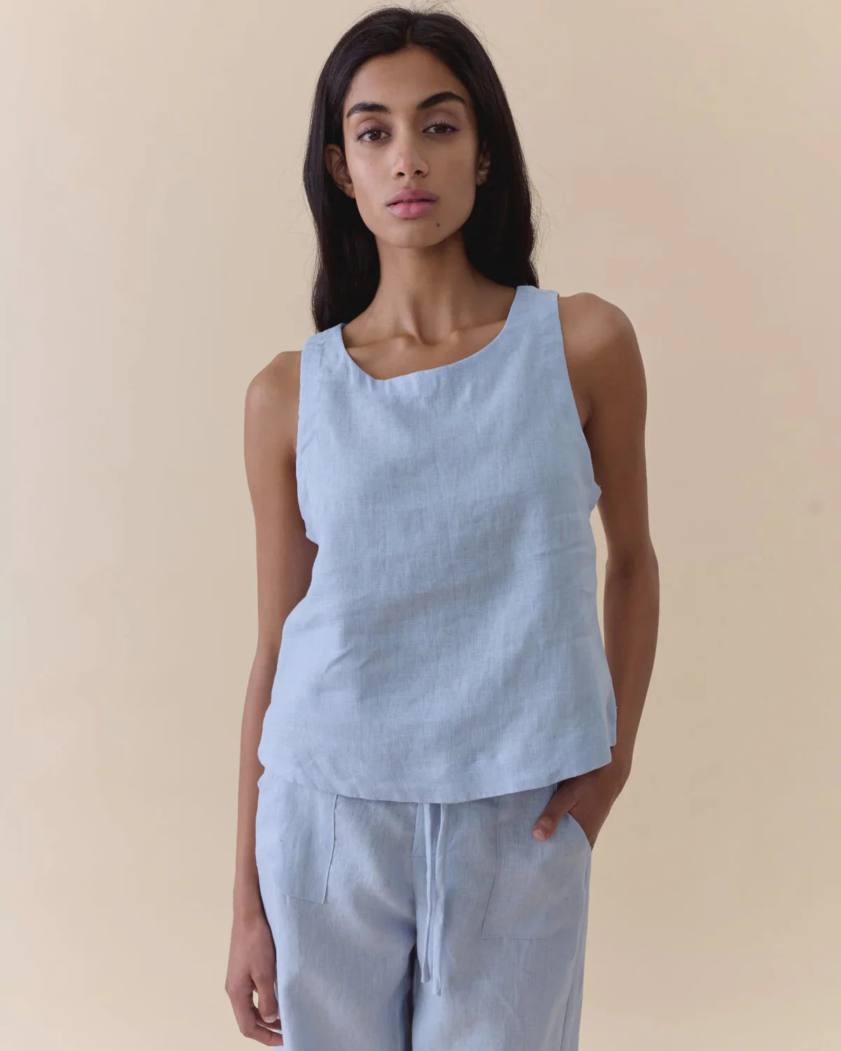 The Jude Top in cornflower blue from Little Lies will elevate your Jude Pants to new heights. Crafted from 100% linen, this tank features a relaxed fit and is bra-friendly. Its light and breezy design ensures it becomes a wardrobe staple, perfect for mixing and matching with almost anything. Pair it with any colour of our Jude Pants for an effortlessly chic outfit.