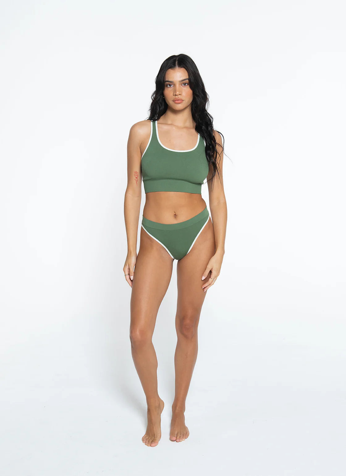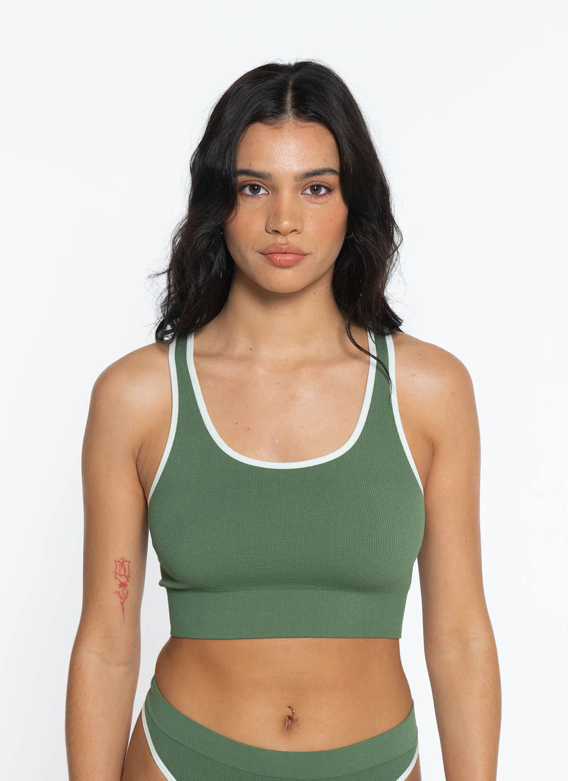 Say hello to our Racer Back Luxe Crop, now in gorgeous moss green with chic cream trim! Perfect for lounging at home or strutting down the street, this top blends comfort with street-smart style. Don’t just dress to impress—dress to express in colors that bring out the best in your everyday adventures.