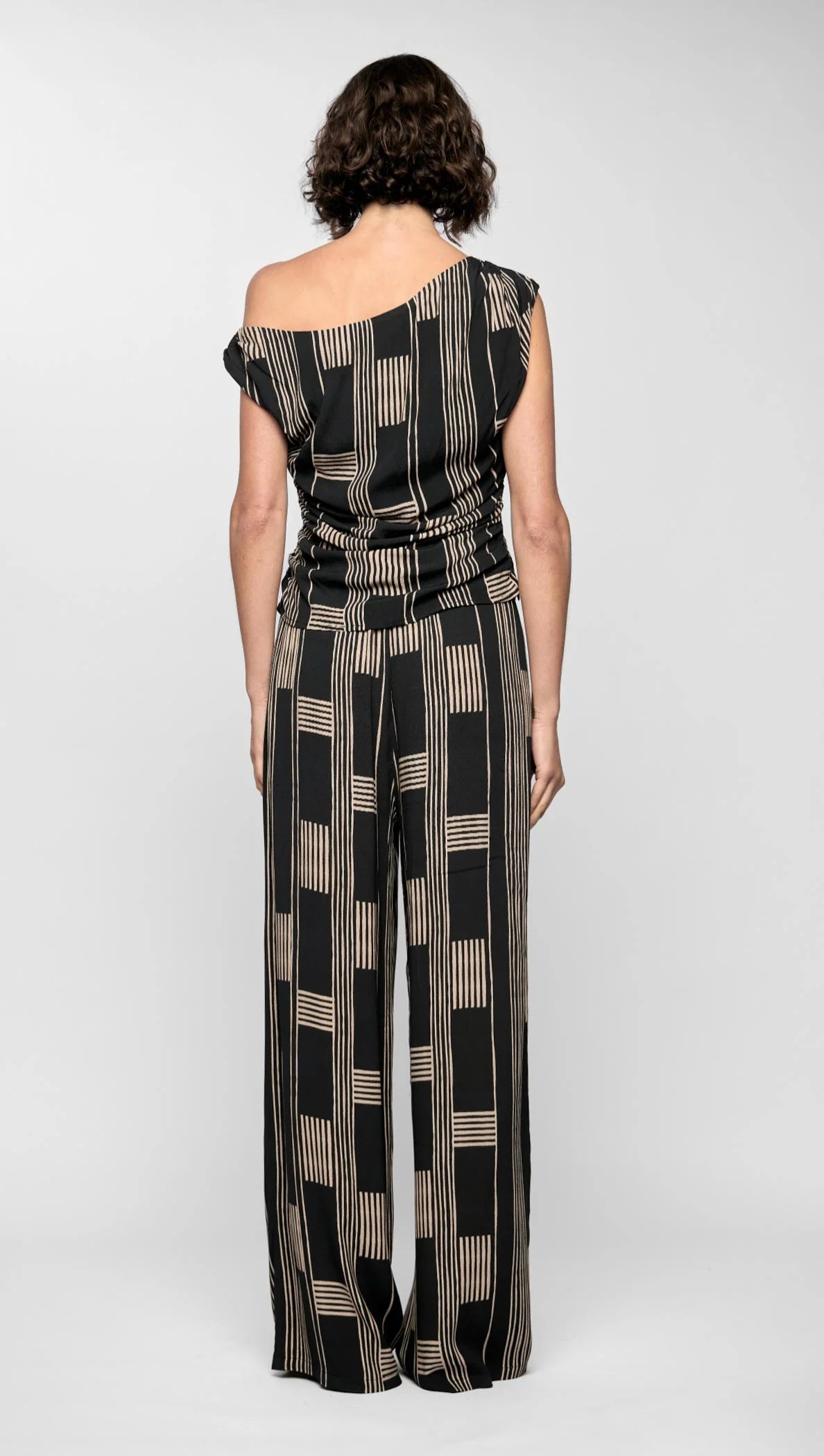Effortlessly modern, the Marina Asymmetrical Top is cut in a soft viscose with a bold abstract stripe print. Wear it off-shoulder for an elevated feel. Pair with the matching Marina Pants or dress it down with denim.