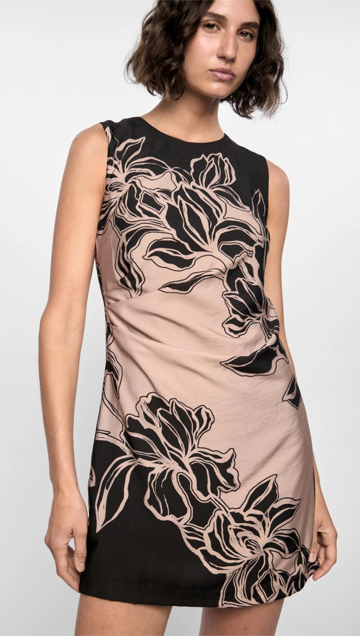 The Mira Mini Dress is made to stand out. With a bold floral print and soft colour-blocked contrast, this sleeveless mini is your go-to for dressed-up dinners or party nights. The streamlined silhouette with ruched detailing and lightweight feel keep it effortlessly flattering.