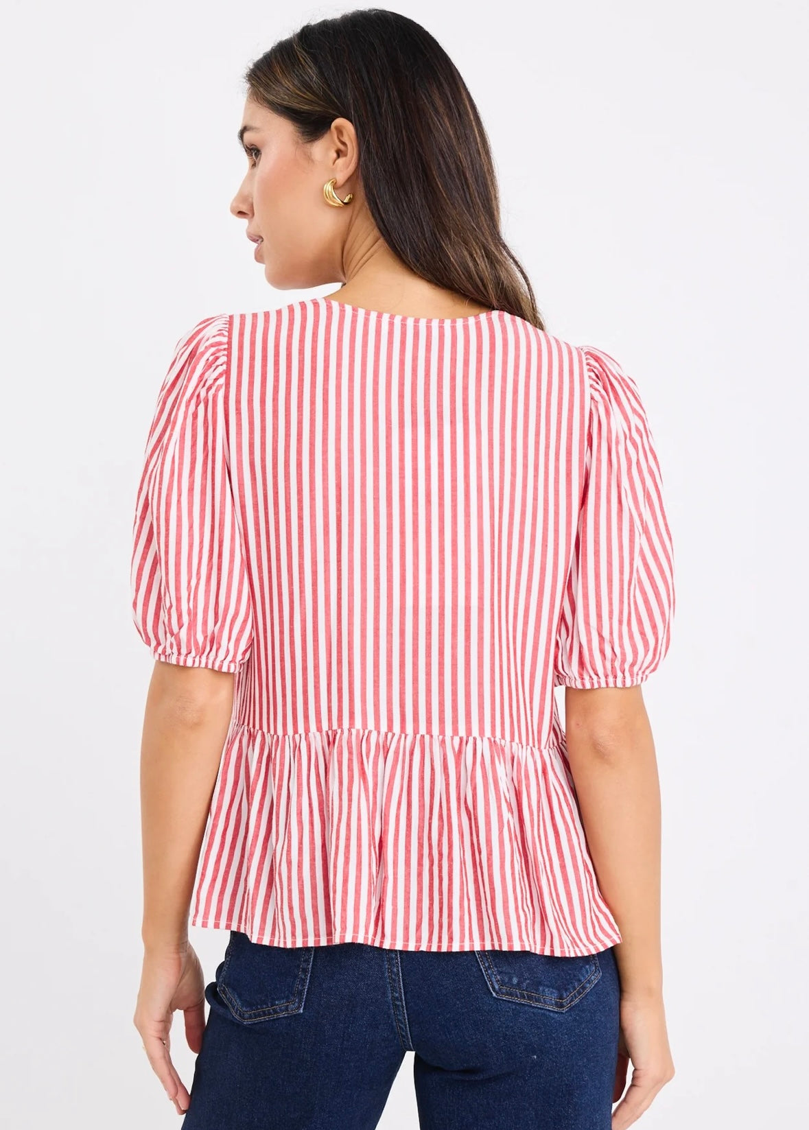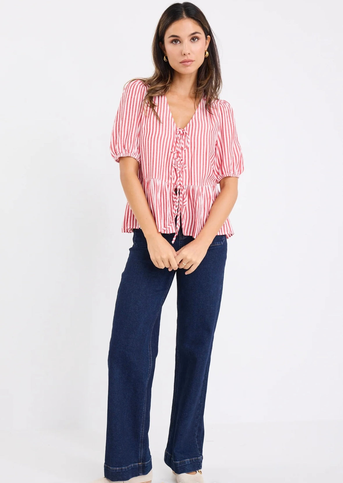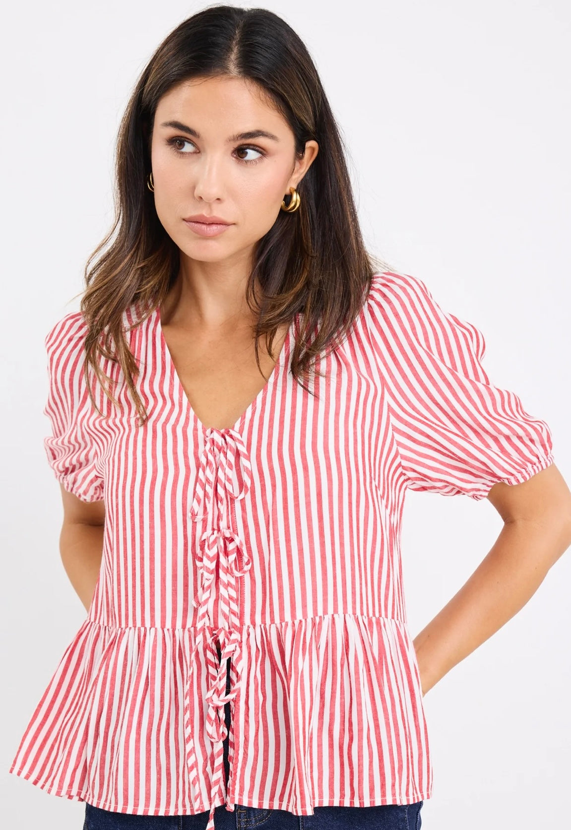 stories be told - Restore Tie Front Peplum S/S Top - red stripe